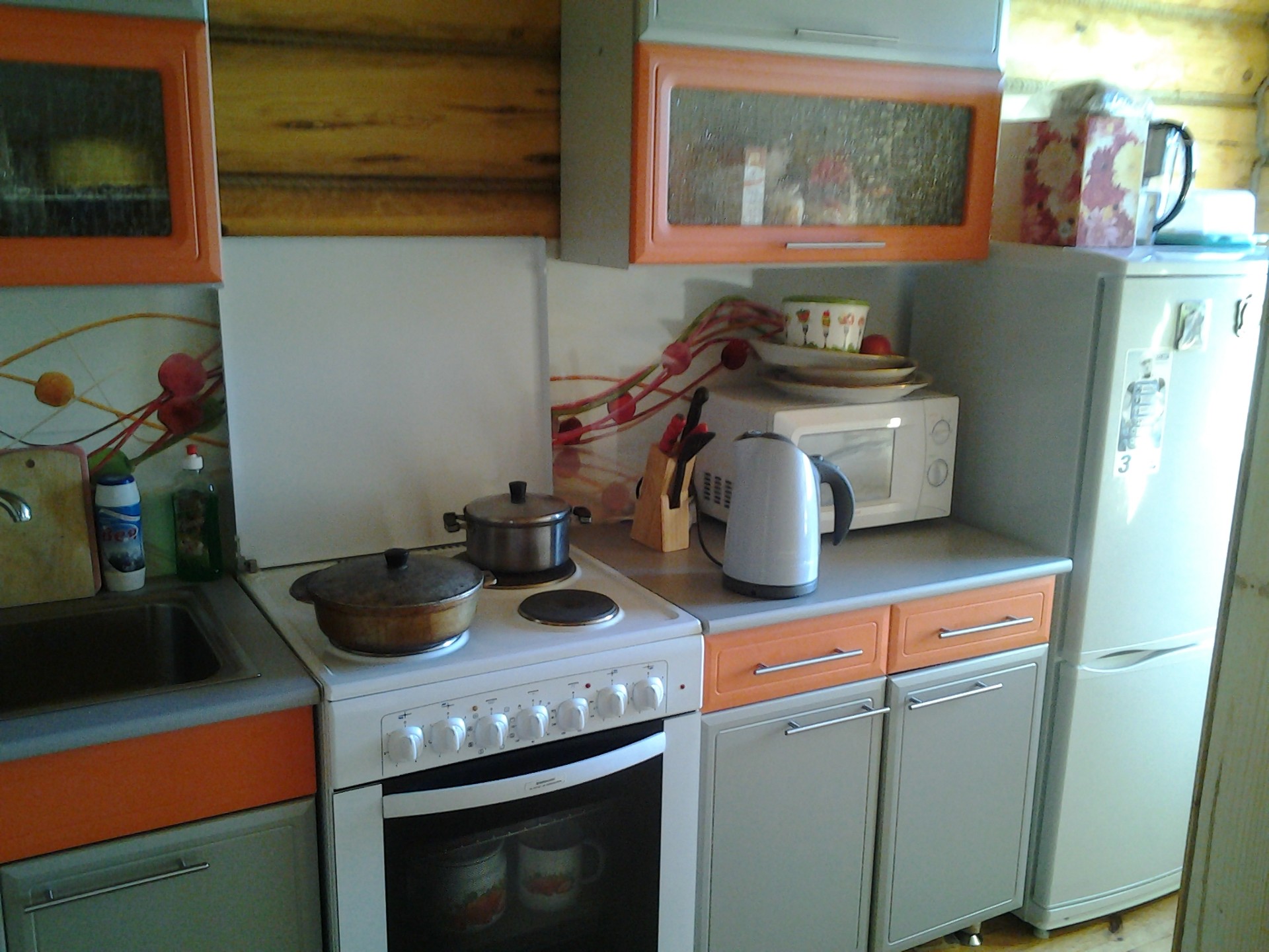 В целях экономии бюджета домик оборудован кухней и всем необходимым для самостоятельного приготовления еды. Продукты можно купить в городе ( от нас около 6 км) или в автолавке ( 2 раза в неделю). Если Вы хотите полностью отдохнуть от приготовления еды, то мы можем предложить 3-х разовое питание на открытом воздухе в оборудованной беседке. Стоимость питания оговаривается дополнительно. В питании будут использоваться овощи и зелень с грядки, собственные ягоды и фрукты, свежие яйца и молочные продукты, мед со своей пасеки.